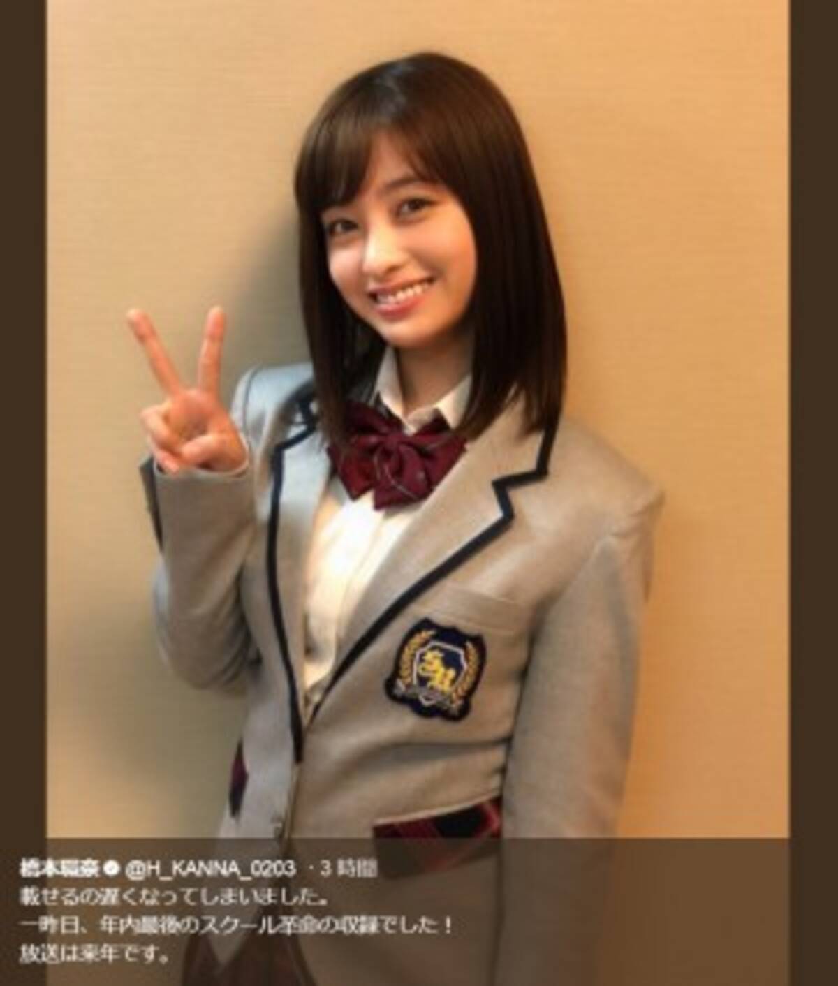橋本環奈 制服姿 でピース スクール革命 年内最後の収録終える 17年12月30日 エキサイトニュース